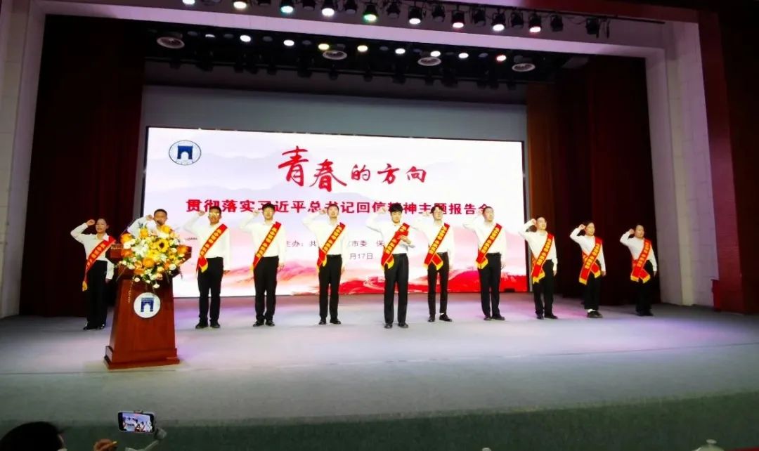 保定学院翟少鹏作为青年代表,在报告会上发出倡议:“我们新时代青年,志在四方,奋斗无悔。我们每个人前进的脚步,会叠加成祖国的进步。我们每个人创造的价值,将汇聚成民族复兴的力量。让我们一起行动,用青春的智慧和汗水写下新时代中国青年的精彩篇章。”