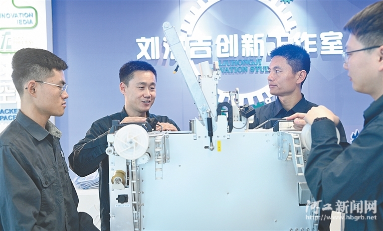 ■刘洪吉(左二)带领创新工作室成员研发机器人