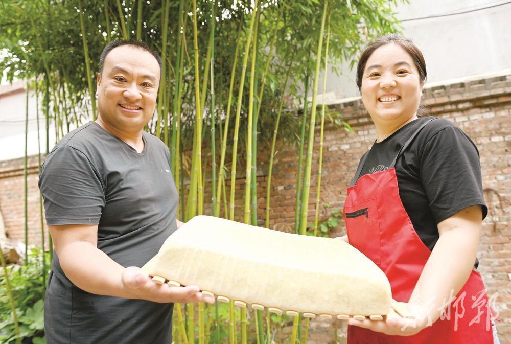 6月18日,温换林夫妇向记者展示刚压制好的豆腐。