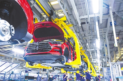 9月23日,在深圳比亚迪总部,工人进行新能源汽车的组装。 新华社记者 毛思倩摄