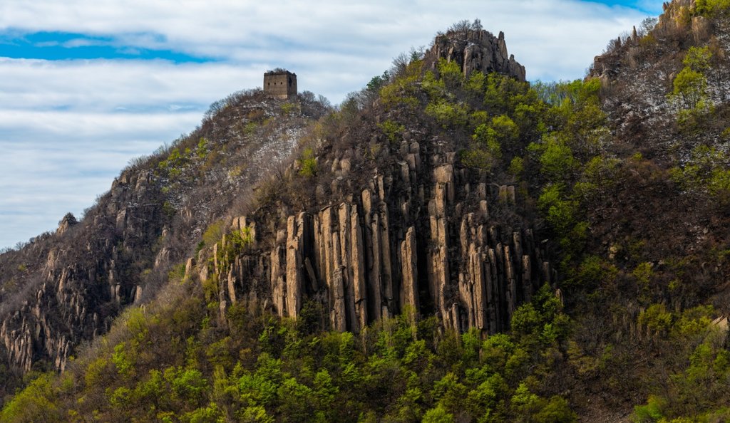 挺立在古火山岩石上的板厂峪长城