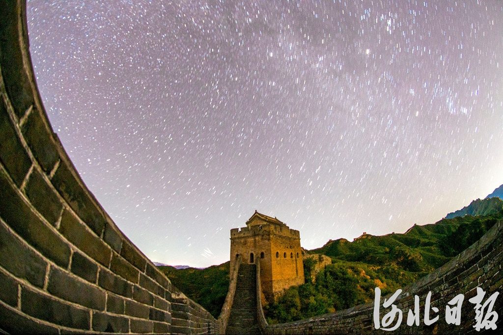 金山岭长城景区,天气晴好,繁星密布,银河璀璨壮丽,美不胜收。河北日报通讯员周万萍摄(资料片)