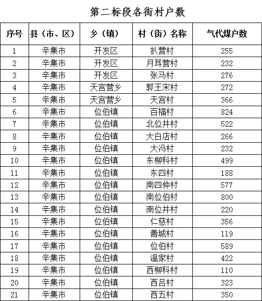第二标段,2018年完成气代煤17204户,共涉及7个乡镇、园区,54个村。