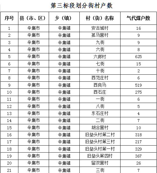 第三标段,2019年气代煤7034户,共涉及4个乡镇,48个村。