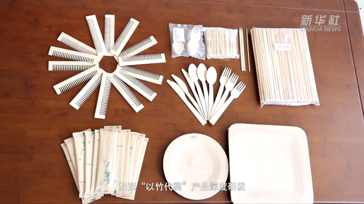绥宁产出的竹子色泽亮、质地脆,且竹材纤维弹性好。丰富优质的竹资源为当地竹产业的发展奠定坚实基础。竹餐盘、竹刀叉、竹吸管……普通塑料材质的一次性用品在这里变成了绿色、低碳、环保的竹制品。为进一步减少塑料污染,当地相继出台多项政策扶持竹产业发展,鼓励竹业企业加强“以竹代塑”产品深度研发,丰富品种生产线。