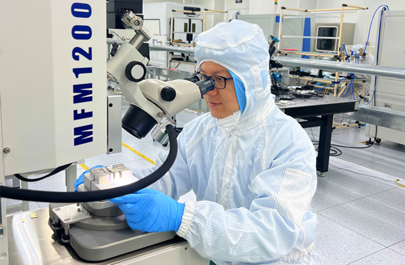 跟着陈伟走进芯联新(河北雄安)科技有限公司洁净车间,只见工人正在加紧为客户赶制订单。陈伟边走边介绍:“窄线宽激光器可应用在卫星激光通信、气体传感、智慧交通、智能管廊、量子计算等场景……”