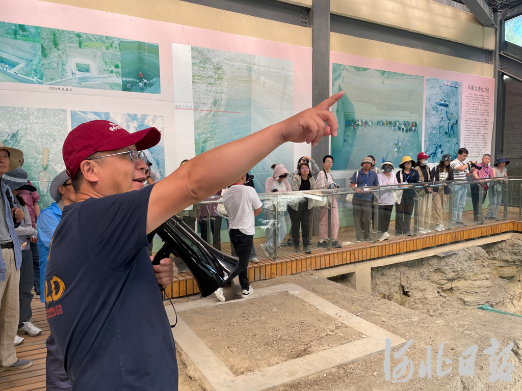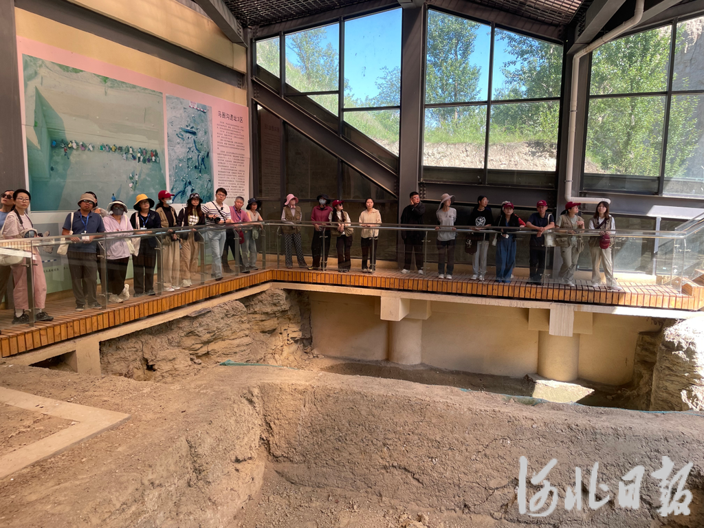 8月21日,参加泥河湾科学发现100周年国际学术研讨会的专家学者来到马圈沟遗址参观考察。