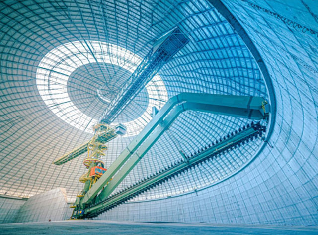 在80多公里外的唐山乐亭,河钢集团唐钢新区,通过全封闭式散装物料皮带“绿色”通廊,将京唐港4号码头上的原燃料输送至智能“无人化”料场,最大限度地减少扬尘,实现了大宗物料超低排放。