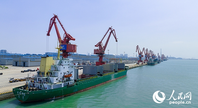 一台台高耸的港吊舒展长臂,伸向茫茫天海。满载钢材的轮船徐徐离开首钢京唐成品码头,前往上海港。