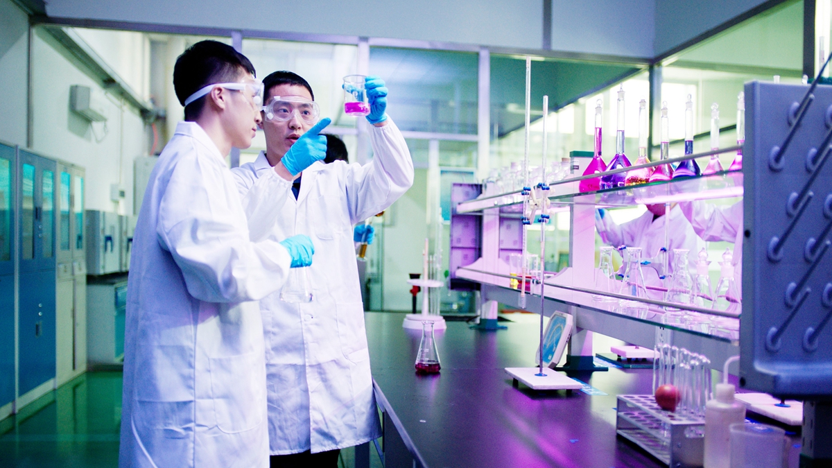 在华密新材的实验室,工作人员进行材料化学性能检测。