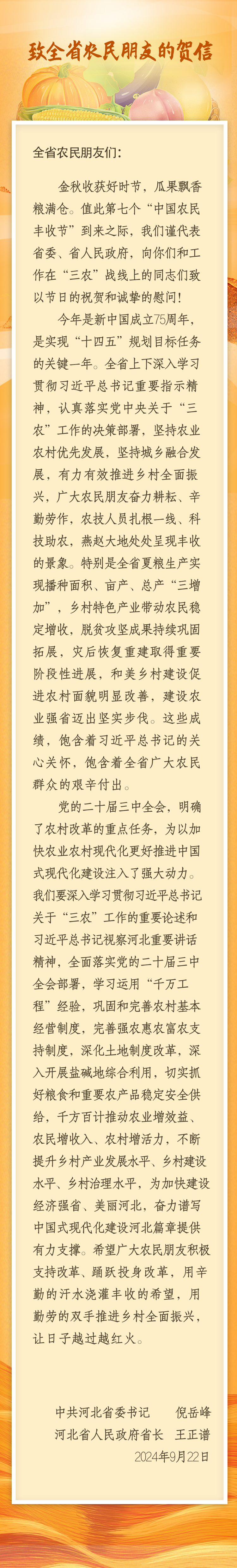 致全省农民朋友的贺信