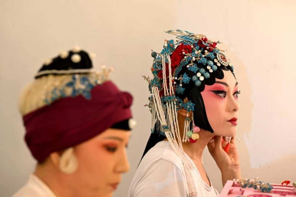石家庄市丝弦剧团演员在石家庄丝弦剧院化妆。(资料片)图源人民日报客户端(陈其保摄)