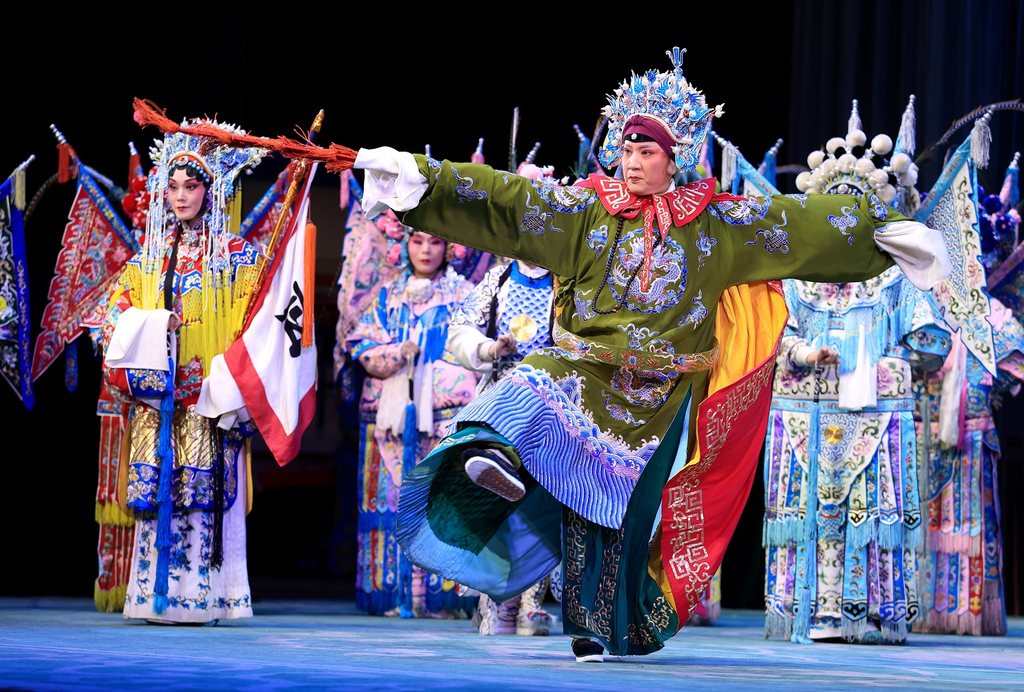石家庄市丝弦剧团演员在表演剧目《杨门女将》。(资料片)图源人民日报客户端(陈其保摄)