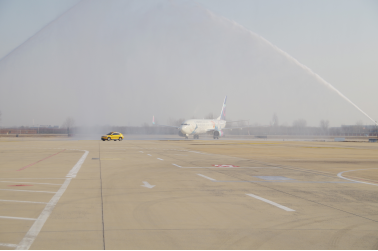 随着机身绘有正定隆兴寺、荣国府牌楼、开元寺须弥塔等知名景观的KN5025航班降落石家庄正定国际机场,标志着中国联合航空“正定号”全彩绘飞机圆满完成温州至石家庄的首航任务。石家庄机场方面以民航界最高礼遇“水门”迎接。