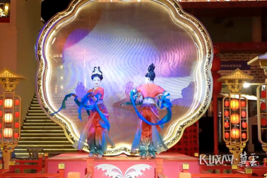 “我们打造的是北方的水上大唐不夜城,您看,旁边的那个微演绎舞台上,很小的一个场地,也有身着唐装的舞者在跳舞。像这样的微演绎舞台有18个。让大家在观赏美景的同时,随时感受盛唐景象。”殷新说。