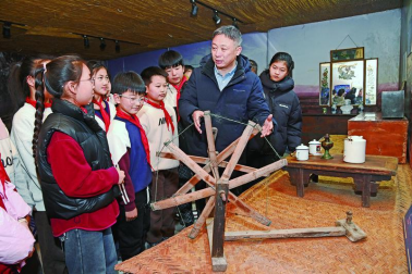 毕武庄小学学生在民俗文化展室参观。