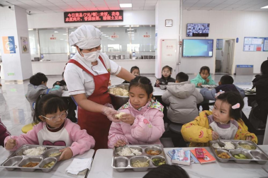 学校营养午餐,荤素搭配、营养均衡、不限量供应,让每个孩子“花得少”“吃得好”。