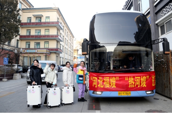 2024年12月25日,20名“河北福嫂”搭乘“点对点”专车从河北承德出发,奔赴北京市朝阳区就业。
