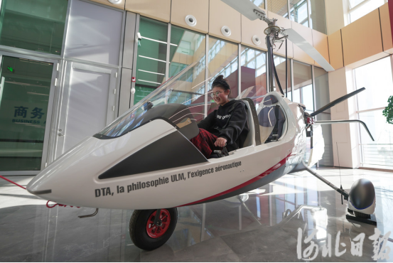 走进雄安高新区创新孵化器一楼大厅,一台Xeeleex二代自转旋翼机引人注目。