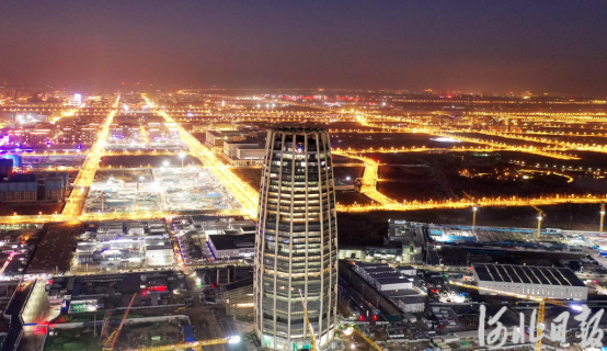 2025年1月20日晚,雄安新区启动区中国中化大厦项目附近灯光璀璨。河北日报记者 刘光昱 摄