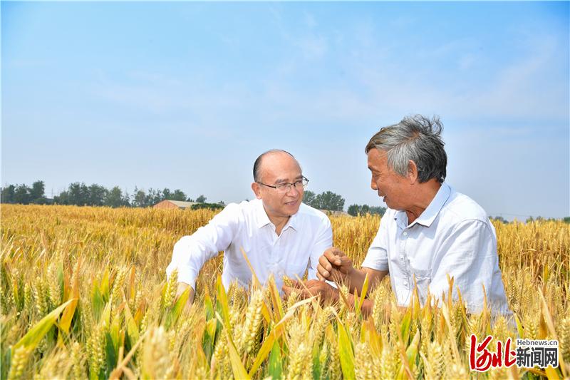 6月8日,省长许勤到辛集市调研检查种业攻关、夏收、生态环境治理等工作。这是许勤来到辛集马兰农场“马兰一号”高产田,察看小麦长势和土壤墒情,与省小麦育种首席专家、石家庄市农科院名誉院长郭进考交流,了解种业攻关和今年夏收等情况。河北日报记者孟宇光摄