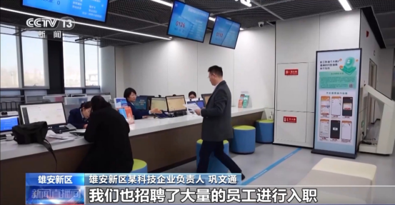 雄安新区某科技企业负责人 巩文通:这个招聘季,我们也招聘了大量的员工进行入职,我们一部分员工的社保是在北京。我们进行集中参保,全部转到了雄安。我们现在这些员工就不需要再跑到北京,直接在雄安就能同城化进行一键办理,非常方便。