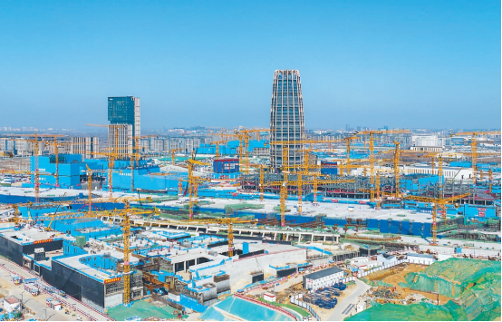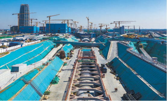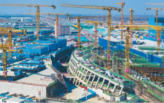 截至今年1月,雄安新区启动区内总建筑面积约106万平方米的雄安城际站及国贸中心项目进展顺利。国贸中心项目9栋主体楼宇已完成耗时一年多的桩基、地下室施工,正式转入地上主体结构施工阶段。