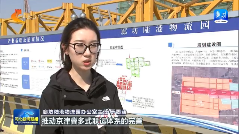 廊坊陆港物流园项目总投资101亿元,分三期规划建设,一期工程为起步区,主要建设海关监管区、铁路货场区、集装箱作业区等,目前进场路工程、临时服务中心工程、105国道拓宽工程等已竣工投入使用。项目全部建成后,预计年交易量可达5000万吨,吸纳10000多人就业,成为服务京津冀、辐射全国的国际陆港货运枢纽和商贸物流示范区。