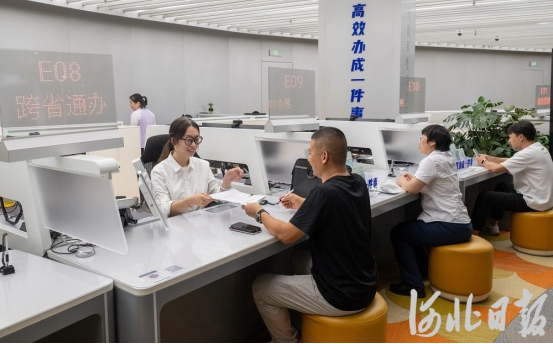 8月4日,石家庄市政务服务中心“高效办成一件事”窗口工作人员为群众办理业务。