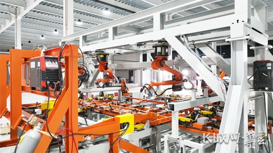 激光精准划过镀锌方管,机械臂迅速将其裁成45度斜角切口……焊花飞溅间,一片儿铁路护栏网顺利下线。这一幕是河北安平县网都科技共享智造工厂内,全国首条护栏网自动化焊接流水线的生产场景。