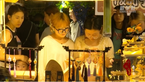 夜幕降临,现代光影技术将“只有红楼梦·戏剧幻城”变身奇幻舞台。12名演员化身“金陵十二钗”,游客可以坐上红椅子,与“林黛玉”“薛宝钗”互动,体验一把当“演员”的奇妙感受。与之一墙相隔的水云间文化商街同样热闹,码头广场上的夜间音乐会燃情开唱,掌声与欢笑声交织成夏夜乐章。
