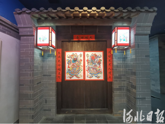 武强年画博物馆里,情景再现了张贴着《鞭锏门神》年画的北方农家小院大门。