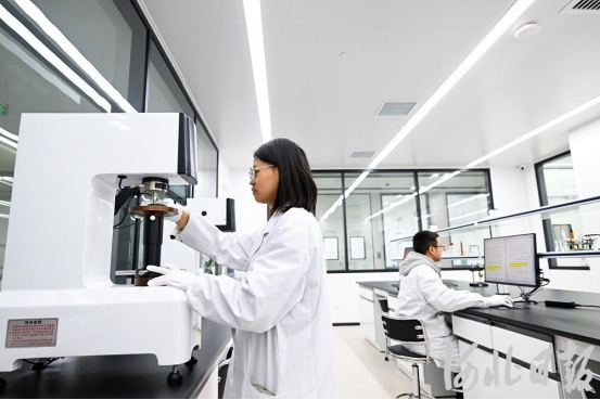 11月24日,位于临西县的中塞(国际)轴承产业共享实验室内,工作人员在检测轴承样品。