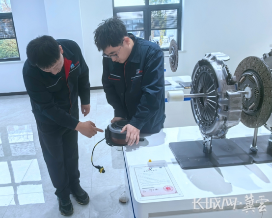 崔芹芹指向另一款产品,眼神中透着自豪:“这是AMT双片自调节离合器,带自调整功能。从动盘磨损后能自动补偿,始终保持最佳状态。”这个看似简单的圆盘,却是传递发动机动力的关键,其性能直接决定卡车的动力输出是否柔顺、可靠。
