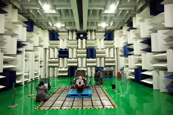 11月18日,技术人员在轨道交通产品质检中心的声学实验室内进行噪声测试。