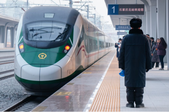 ↑1月26日,列车驶入石家庄北站。