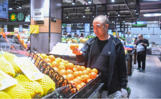 袁玉新在小区附近的超市购物。